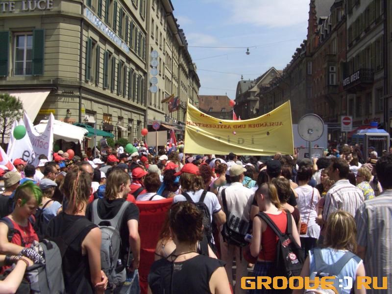 Второй раз в Швейцарии и второй раз попадаю на "народные волнения" в такой, казалост бы благополучной стране. Днмонстрация угнетенных трудящихся 17 июня 2006 г в Бернее