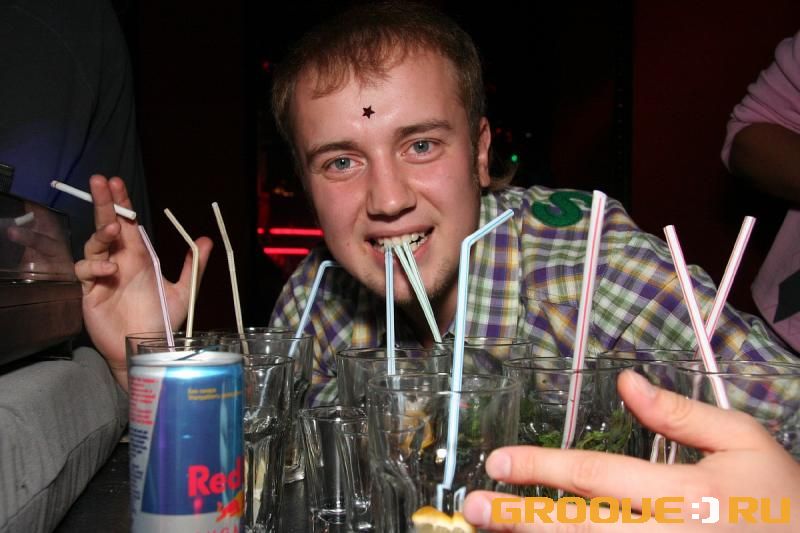 Парень не теряется и трубочки собирает на будущее))) оно и правильно: в хозяйстве все пригодится!)