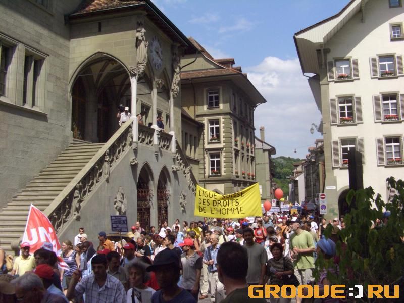 Bern Demonstation Второй раз в Швейцарии и второй раз попадаю на "народные волнения" в такой, казалост бы благополучной стране. Днмонстрация угнетенных трудящихся 17 июня 2006 г в Бернее
