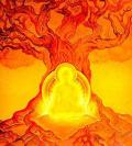 В Китае жил когда-то учитель дхармы по имени Мастер Фо Инь. У этого учителя был друг по имени Су Донг По (1037–1101 н.э.) — поэт с дурной репутацией из-за своего грубого, вздорного характера. Однажды поэт сел, изображая из себя Будду. Он спросил учителя дхармы: — На кого я похож? — Ты похож на Будду, — ответил Мастер Фо Инь. Поэт затем сказал: — Ты знаешь, на кого ты похож? Ты похож на кучу дерьма! Мастера дхармы это нисколько не смутило. Он по-прежнему продолжал улыбаться. Потерявший смелость поэт спросил: — Как же это ты не рассердился? Монах ответил: — Тот, кто осознал в себе природу Будды, видит ту же природу Будды в каждом человеке. Тот же, кто полон дерьма, видит каждого другого как кучу дерьма.... |